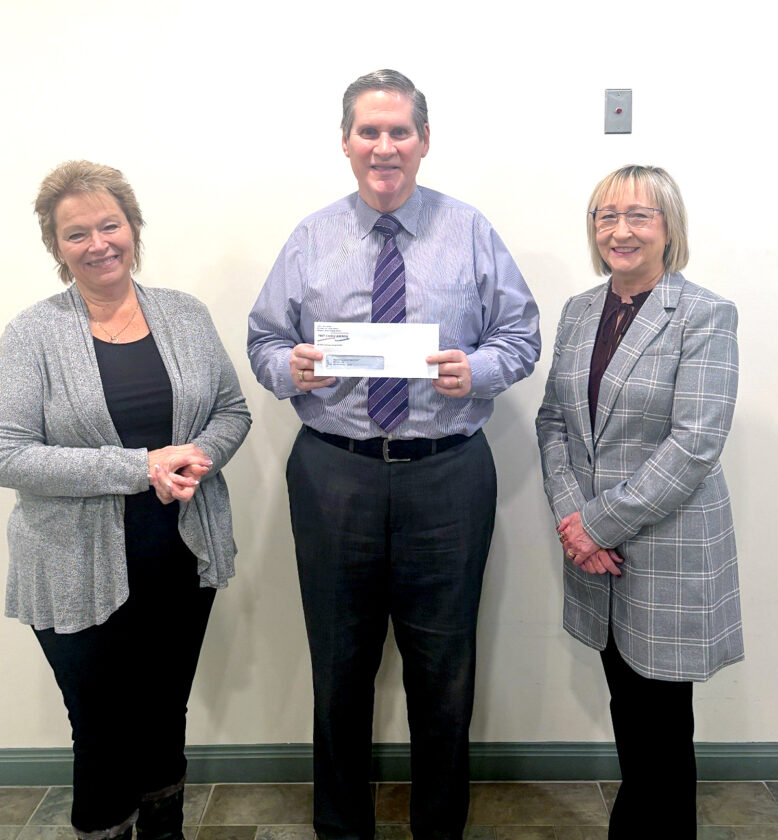 First Choice America Credit Union has pledged a gold-level sponsorship in support of the Rotary Club of Weirton Heights’ annual Mardi Gras fundraiser event, set for Feb. 21 at Pepsi-Cola Roadhouse. Proceeds from this year’s event will benefit the Weirton Christian Center. Pictured are, from left, Weirton Christian Center Executive Director Kim Weaver; Scott E. Winwood, president and CEO of First Choice; and Cathie Caranda, president of the Weirton Heights Rotary. — Contributed