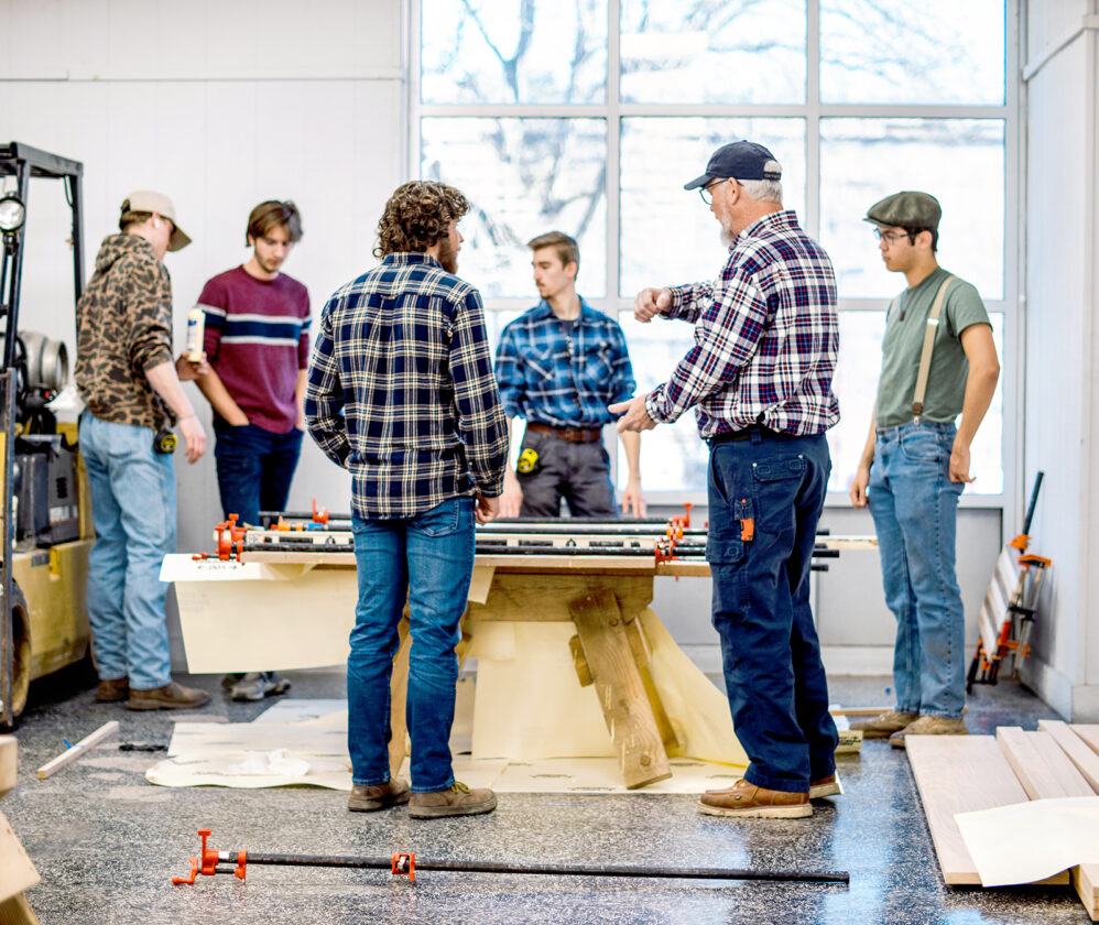 - TRAINING — Master builder Mike Sullivan instructs a group of carpentry students at the College of St. Joseph the Worker. Opened last year, the school offers a mix of hands-on training in skilled trades with Catholic studies and other courses. — Contributed