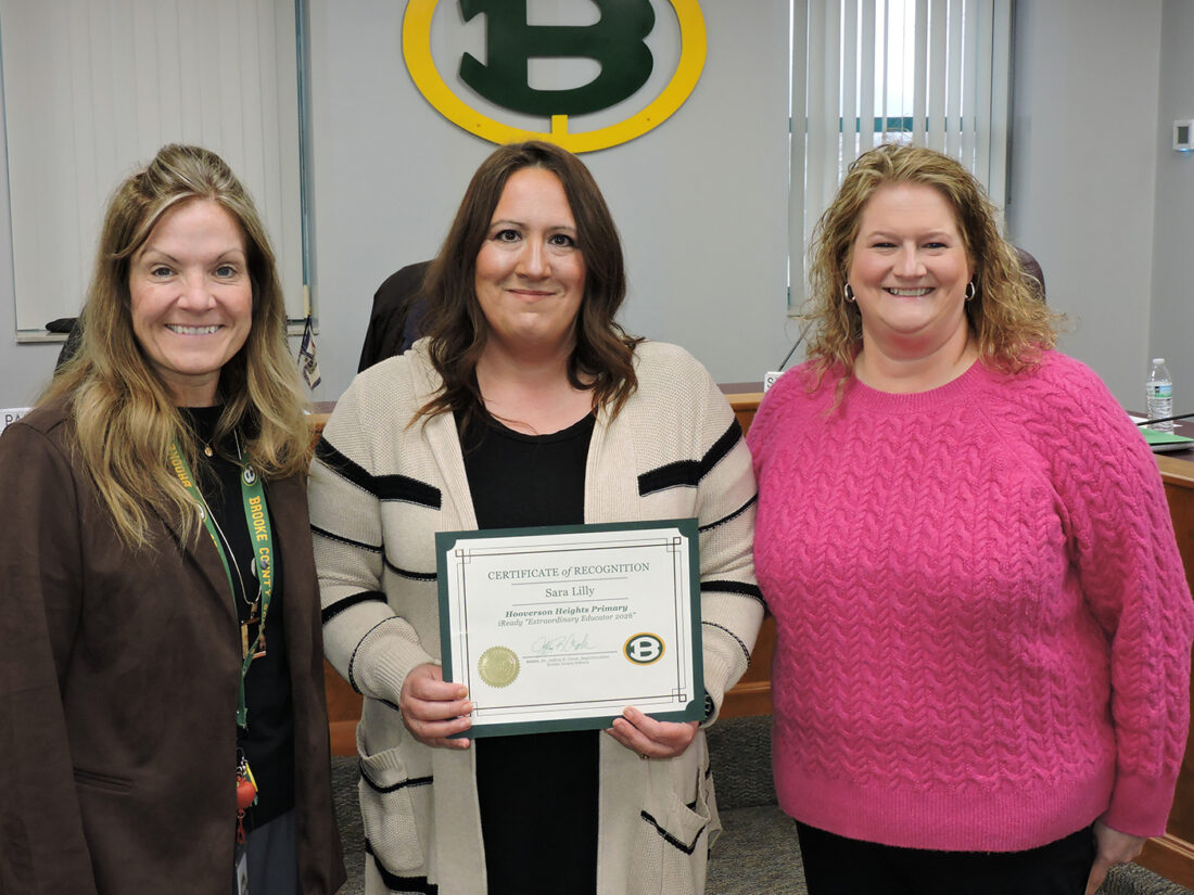 - USING TECH TO TEACH — The Brooke County Board of Education also recognized Sara Lilly, a first-grade teacher at Hooverson Heights Primary School, for being named an i-Ready Extraordinary Educator for using the i-Ready computer platform to help pupils strengthen their math and reading skills. With Lilly, center, are Lori McLaughlin, left, the school district’s director for elementary curriculum and instruction; and Carrie Ciccolella, the school district’s reading coach. — Warren Scott