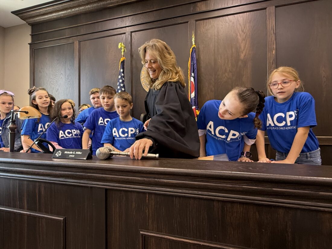The kids, students at Wells Academy and McKinley STEM Academy, had planted blue pinwheels earlier in front of the courthouse minutes earlier to draw attention to child abuse, then made their way up two flights of steps to a third-floor courtroom where Miller talked with them about the court and how it functions, asking them questions and answering theirs.