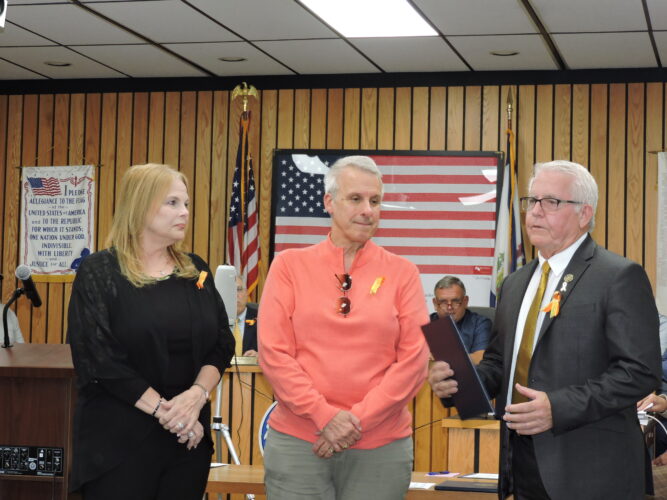 As part of Monday’s meeting of Weirton Council, Mayor Dean Harris presented a proclamation in recognition of September as Childhood Cancer and Leukemia Awareness Month to residents Noreen and Richard Saxon, both of whom have been advocating for the cause. The couple has been working with ...