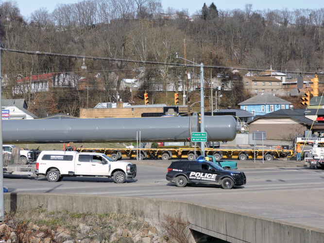 Escorted by officers from the Weirton Police Department, the third in a series of superload transports made its way through Weirton Monday morning. According to Police Chief Charlie Kush, the equipment was fabricated in St. Marys, W.Va., and transported via the Ohio River to Weirton, where ...
