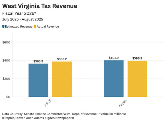 CHARLESTON — Two months into fiscal year 2026, August general revenue fund collections in West Virginia came in slightly lower than estimates, but year-to-date collections remain in the black.