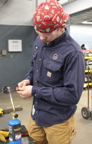 J.D. Koran, a Buckeye Local High School junior in the welding program at Jefferson County Joint Vocational School, uses a flame to color the metal rose he created in his lab. Instructor Todd Parker said juniors and seniors can get creative by cutting and bending thin sheets of metal into petals ...