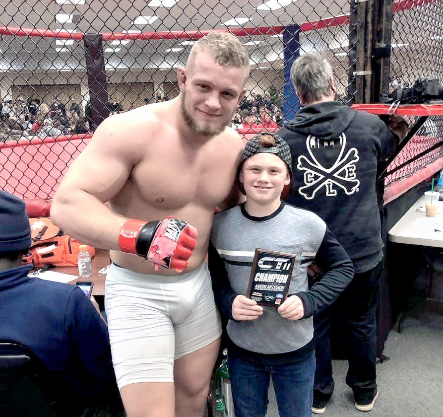 DEBUTING — Cody Gamble, a 2019 graduate of Harrison Central, is with his 9-year-old nephew, Colt Gamble, prior to Cody’s Mixed Martial Arts debut on March 7 at the American Legion in Kent. -Contributed