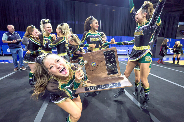 The Brooke cheerleading team won the Class AAA state championship this week.The Bruins’ championship squad was composed of Paisley Sadler, Ava Gatten, Candace DeVore, Lyla Van Horn, Ava Scherich, Marlee Ewusiak, Gianna Svokas, Raelin Stoll, Gabriella Hornick, Addison Scherich, Kayla Elson, Sophia Sacripanti, Karlee Hornick, Braya Mazeika, and Bryson Murray. The Bruins’ Head coach is Michelle Scherich.The Bruins reached states by winning the Class AAA Region 1 championship. — Photos courtesy WVSSAC