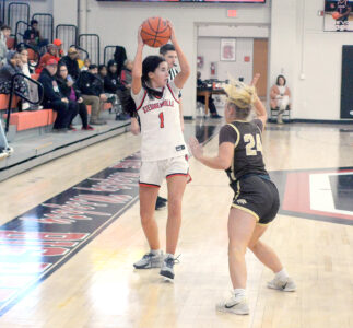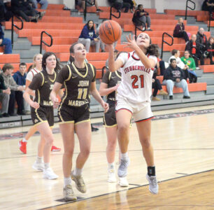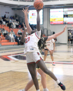 - PUTTING IT UP — Big Red’s Nylah McShan puts in a layup for two of her game-high 27 points against John Marshall on Wednesday. – Andrew Grimm