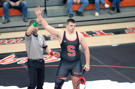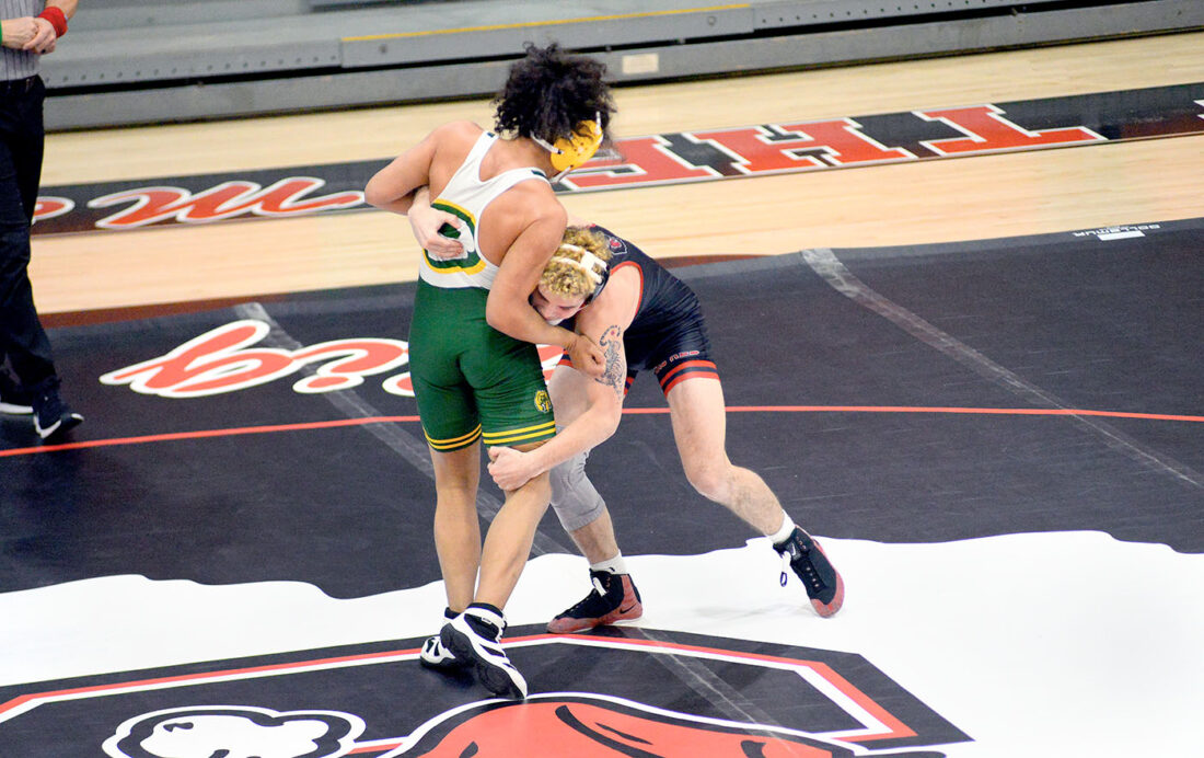- Big Red’s Beau Hudson controls Brooke’s Hemed Allen at heavyweight. Hudson won by pin. – Andrew Grimm