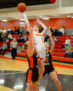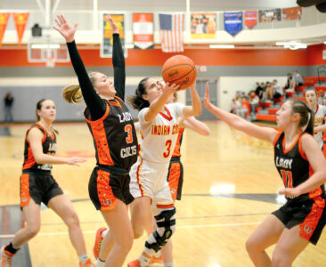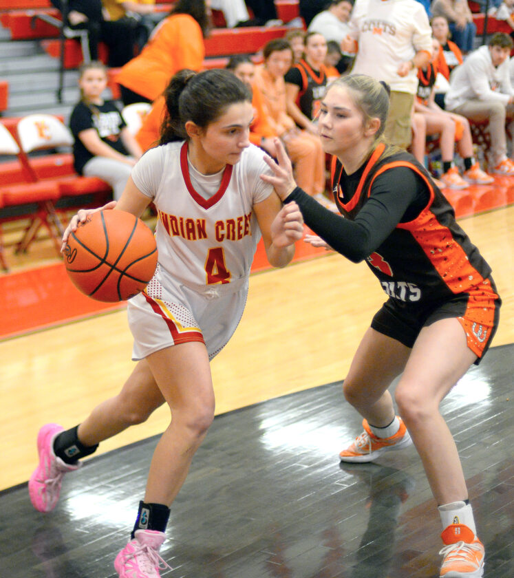 - Indian Creek’s Kaydence Walker puts up a shot on her way to a game-high 19 points. – Andrew Grimm
