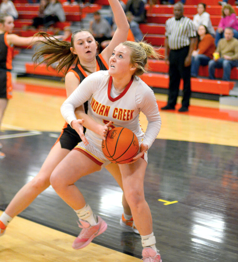 - Indian Creek senior Riley Sadler works to the basket. – Andrew Grimm