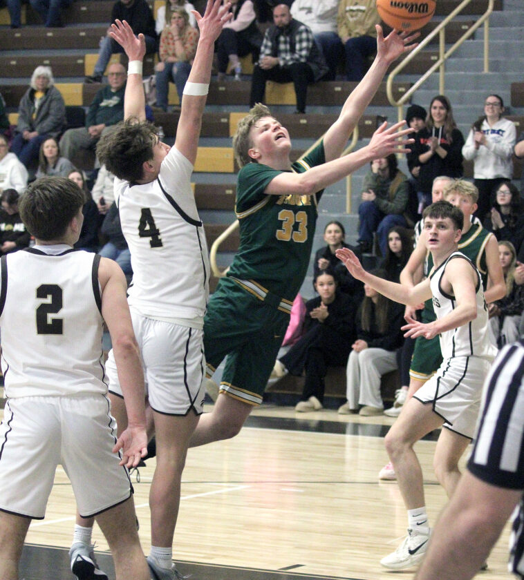 SHOOTING — Brooke’s Pete Fodor attempts a shot against John Marshall on Friday night. - Nick Henthorn