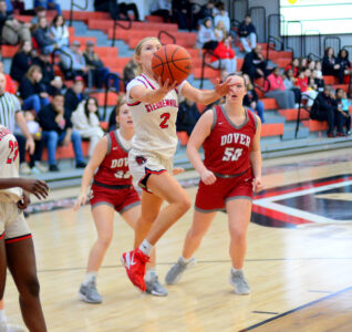 - Big Red’s Mikah Taylor drives to the basket against Dover on Saturday. – Andrew Grimm