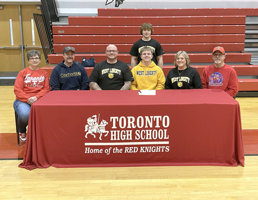 Toronto senior Lucas Wiseman signed to continue his academic and baseball careers at West Liberty University. Joining Lucas, seated, third from right, were, from left, his grandmother Susan Lawrence, uncle Bill Martin, father Ernie Wiseman, brother Colton Wiseman, mother Christina Wiseman and grandfather Bob Lawrence. – Contributed