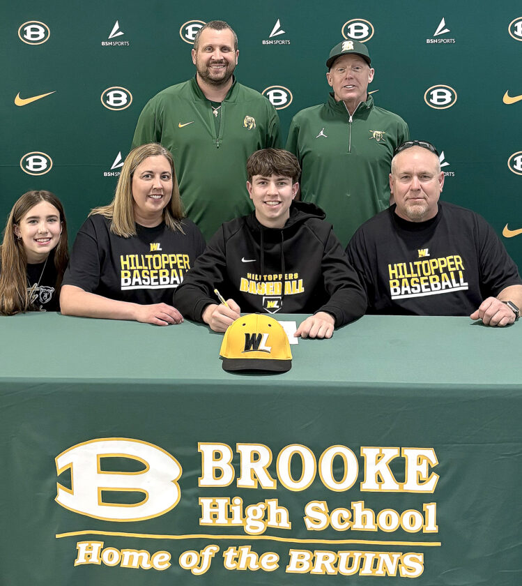 Brooke senior Andrew Murdock recently signed his letter of intent to continue his academic and athletic careers at West Liberty University, where he will play baseball for the Hilltoppers. Joining Andrew, front, second from right, were, seated, from left, his sister Ava Murdock, mother Pam Murdock and father Ed Murdock; and back, Brooke athletic director Jason Williamson, left, and head baseball coach Doug Costain.