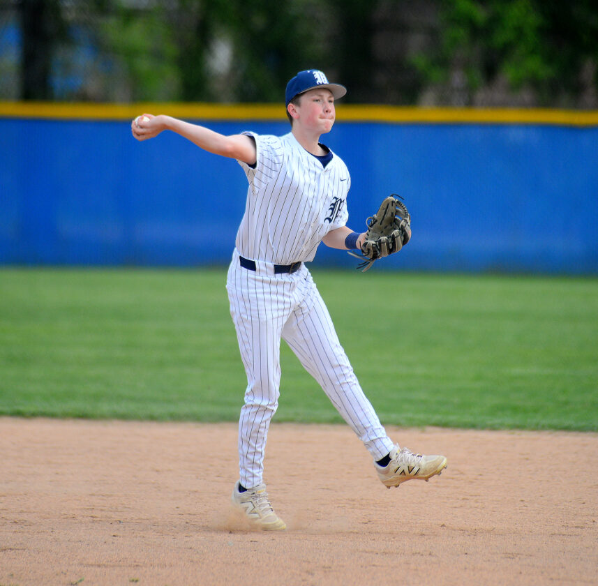 - Andrew Grimm MAKING A PLAY — Madonna’s Camden Michael makes a throw to first for an out.