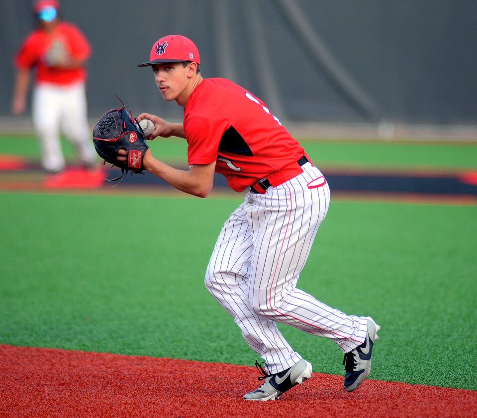 Andrew Grimm MAKING A PLAY — Weir second baseman Teddy Glyptis gets ready to make a throw after fielding a ground ball against Catholic Central.