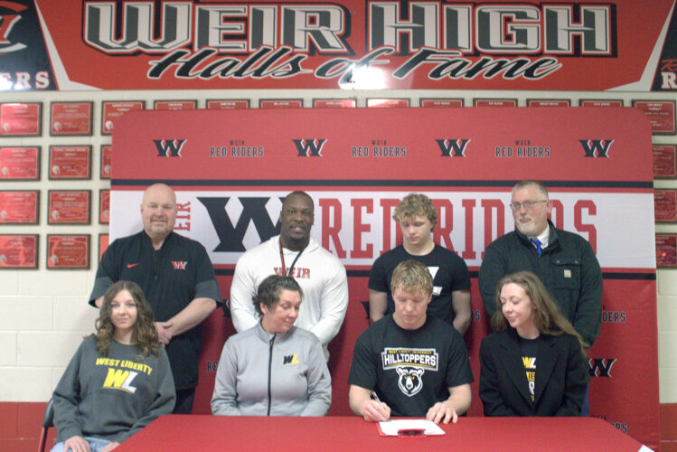 Weir High senior Daniel Howland signed to continue his academic and football careers at West Liberty University. Howland plans to major in business management while playing for the Hilltoppers. Joining Daniel, front, second from right, were, front, from left, Cecilia Howland, Danielle Howland ...